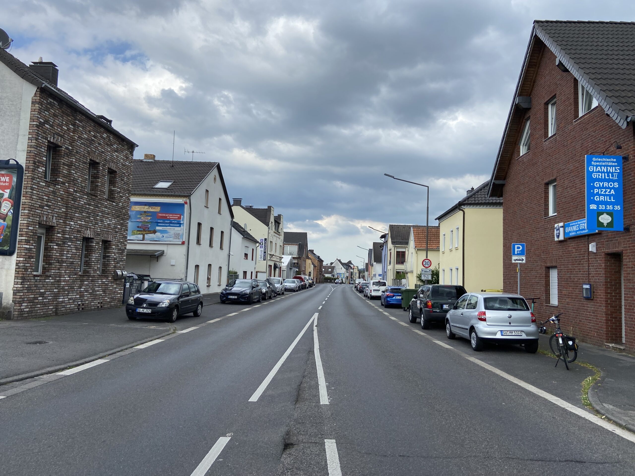 Etwa 17 von ca. 60 bestehenden öffentlichen Parkplätzen sollen nach aktuellem Stand wegfallen, die Erweiterung des Parkplatzes am Fußhöller-Platz eingerechnet. Diese Zahl muss man aber auch in Verbindung setzen zu den vielen weiteren privaten Stellplätzen, alleine beim REWE-Markt ca. 70. Die Parksituation im Kernbereich von Niederpleis richtet sich ja nicht nur nach den öffentlichen Stellplätzen im Straßenraum, sondern nach dem gesamten Parkraumangebot.